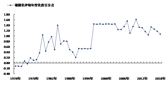 1970年—2018年 中國城鎮(zhèn)化率每年變化的百分點(diǎn)