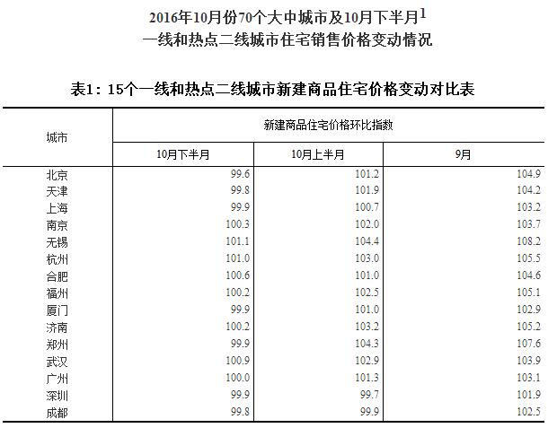 注1:為快速反映近期房地產(chǎn)市場的變化,國家統(tǒng)計局在做好9月份70個大中城市房價統(tǒng)計的同時,對其中一線和部分熱點二線城市10月上半月的房地產(chǎn)市場情況進(jìn)行了統(tǒng)計。
