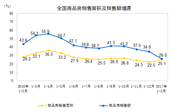 2017年1-2月份全國(guó)房地產(chǎn)開(kāi)發(fā)投資和銷(xiāo)售情況