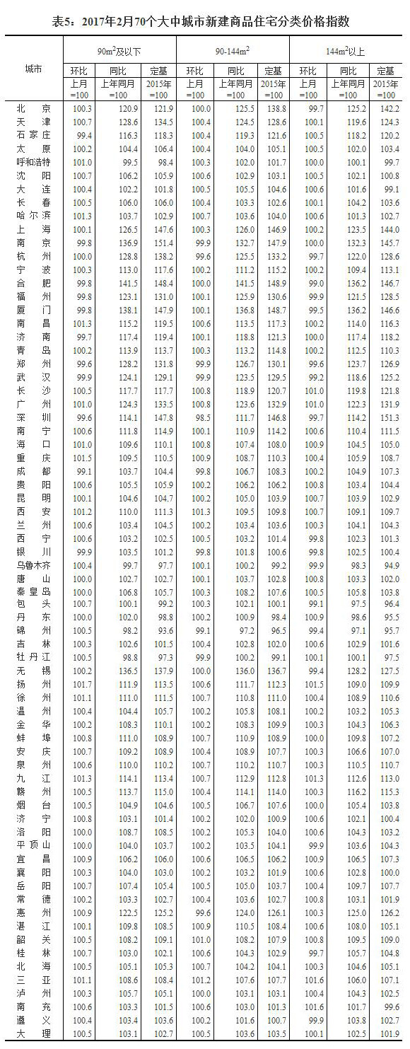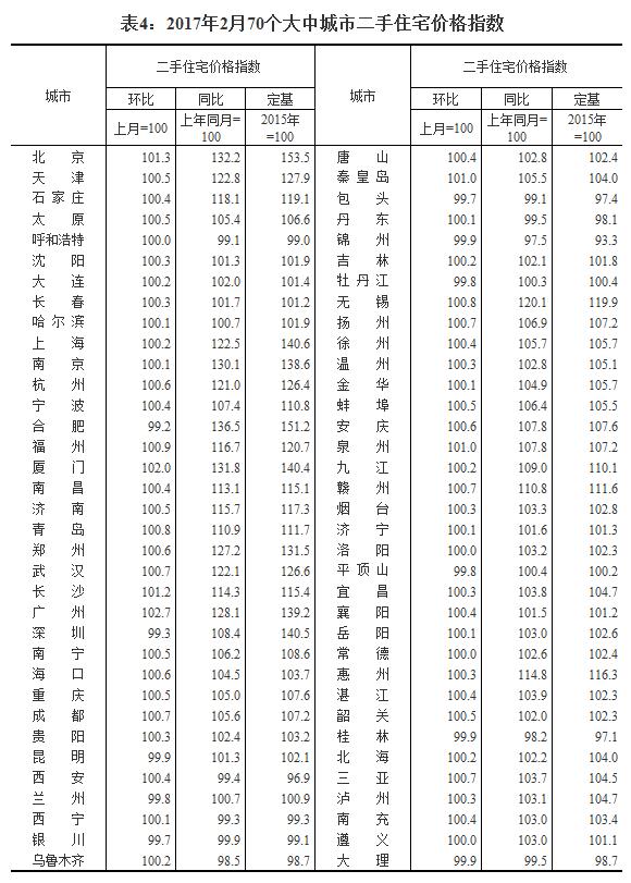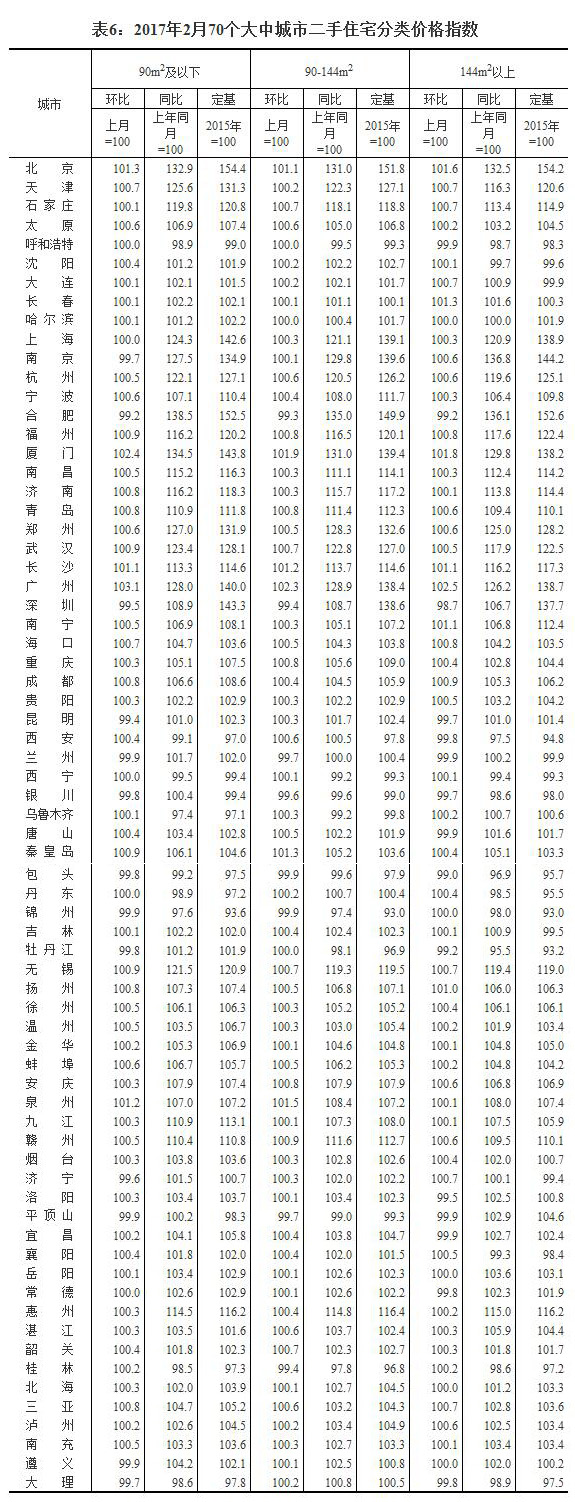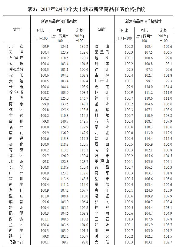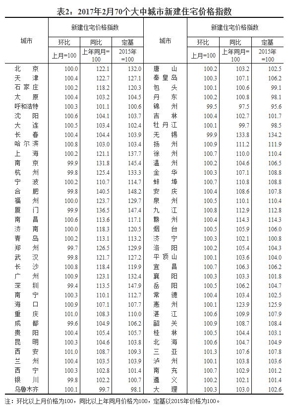 2017年2月份70個(gè)大中城市住宅銷售價(jià)格變動(dòng)情況