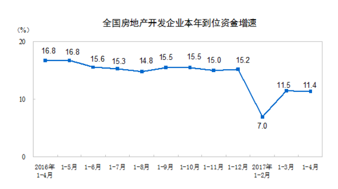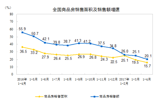 2017年1-4月份全國房地產(chǎn)開發(fā)投資和銷售情況