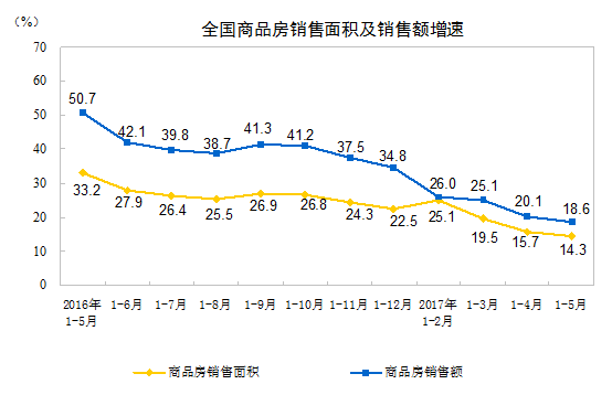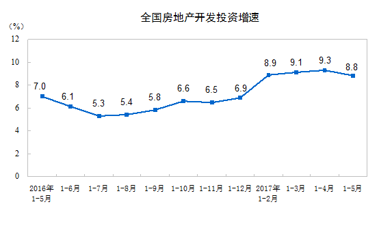 2017年1-5月份全國(guó)房地產(chǎn)開發(fā)投資和銷售情況
