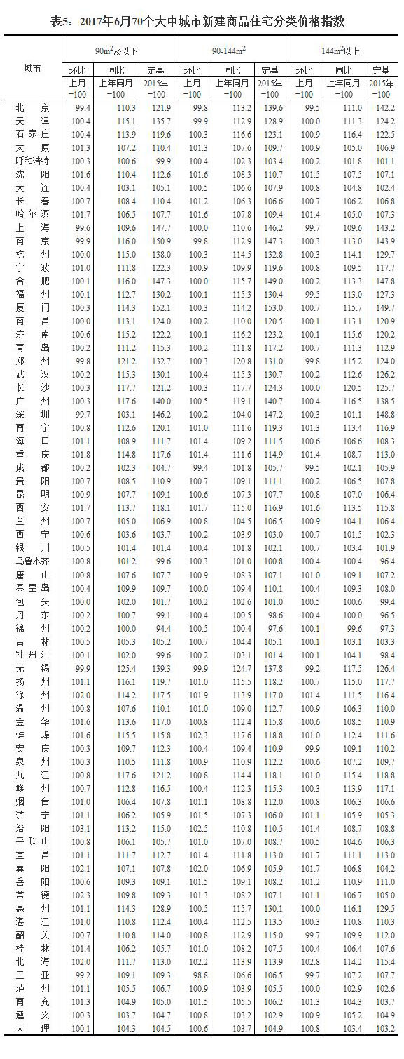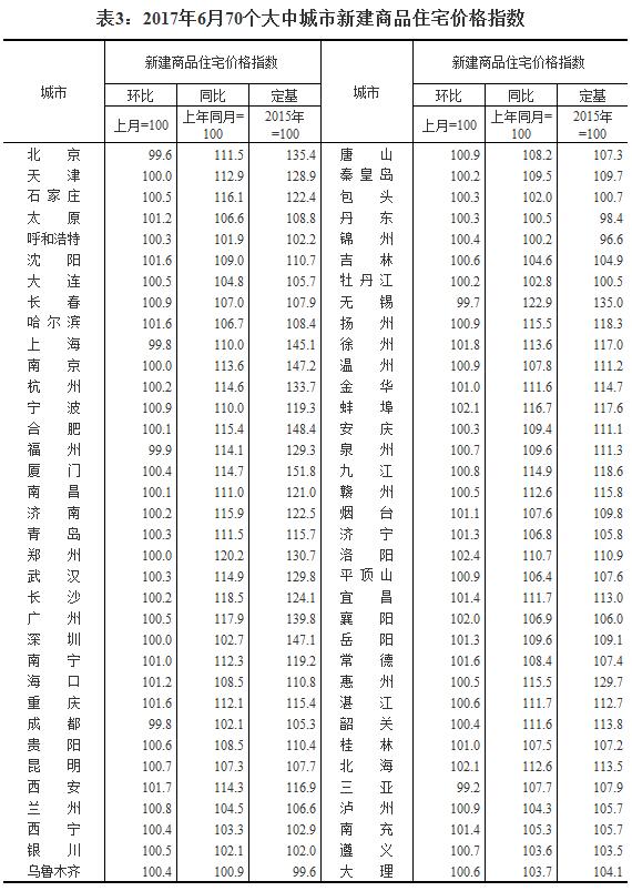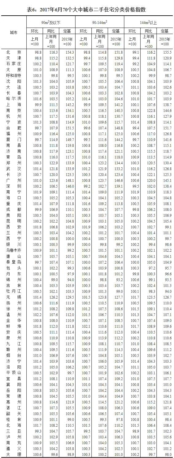 2017年6月份70個大中城市住宅銷售價格變動情況