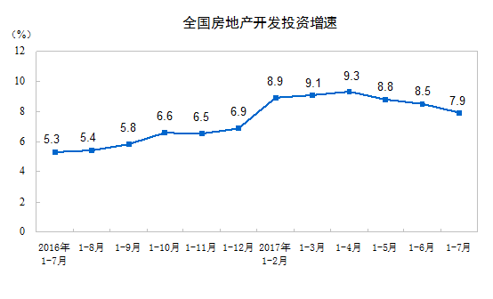 2017年1-7月份全國(guó)房地產(chǎn)開(kāi)發(fā)投資和銷(xiāo)售情況