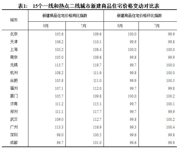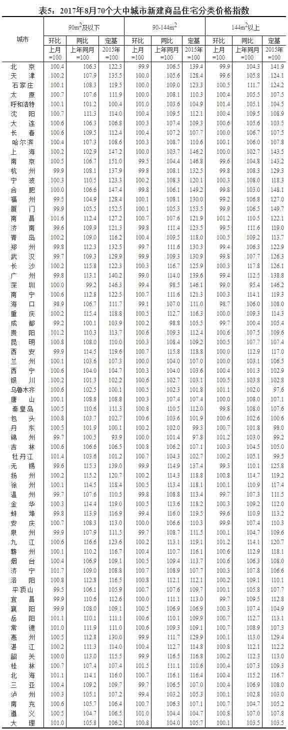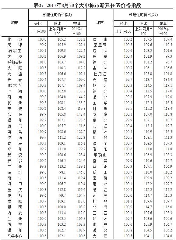 2017年8月份70個大中城市住宅銷售價格變動情況