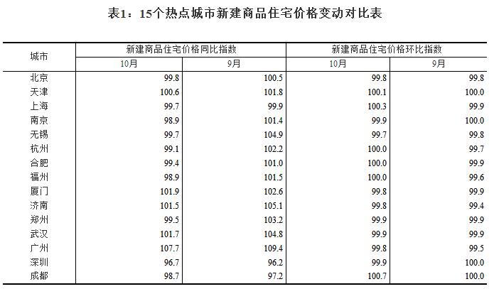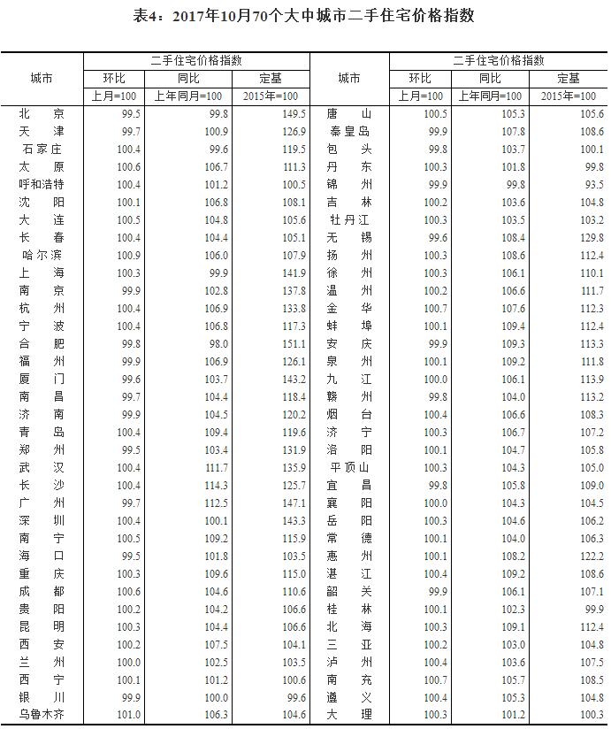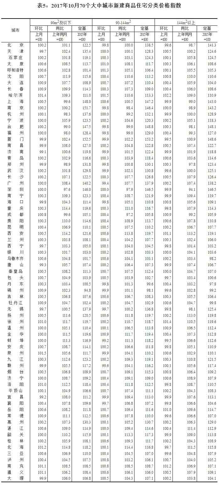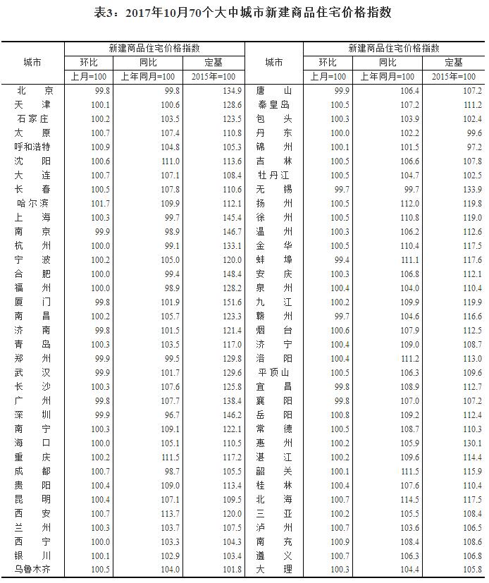 2017年10月份70個大中城市住宅銷售價格變動情況