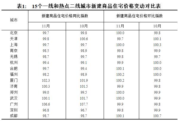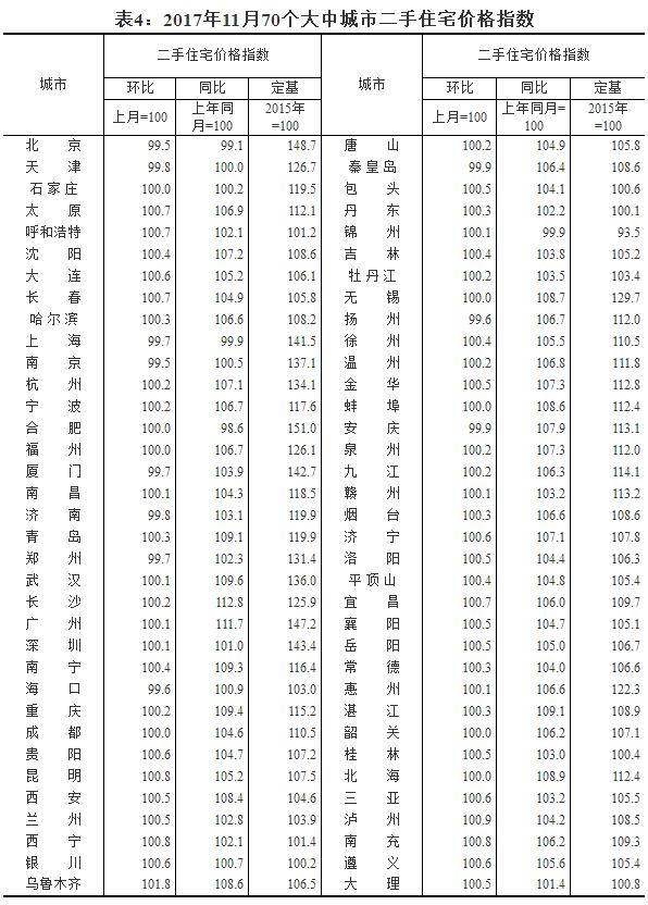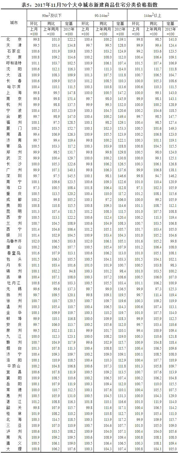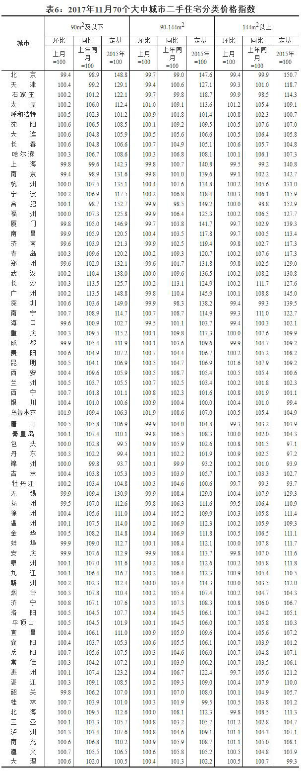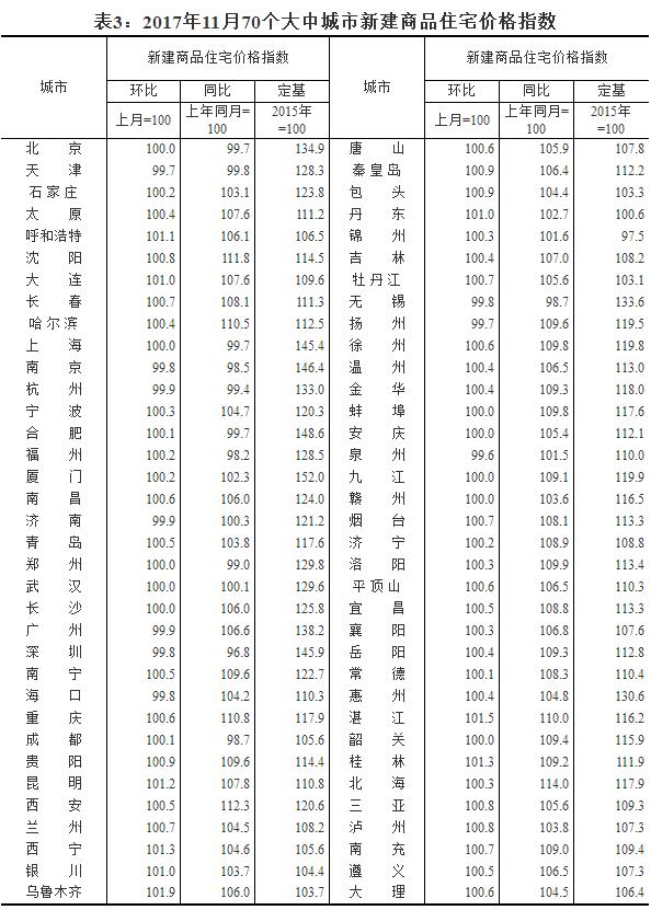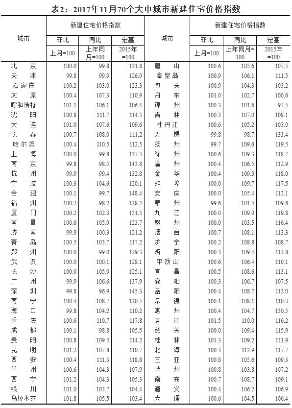 2017年11月份70個(gè)大中城市住宅銷售價(jià)格變動(dòng)情況