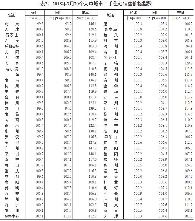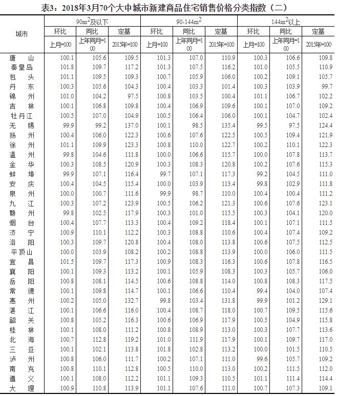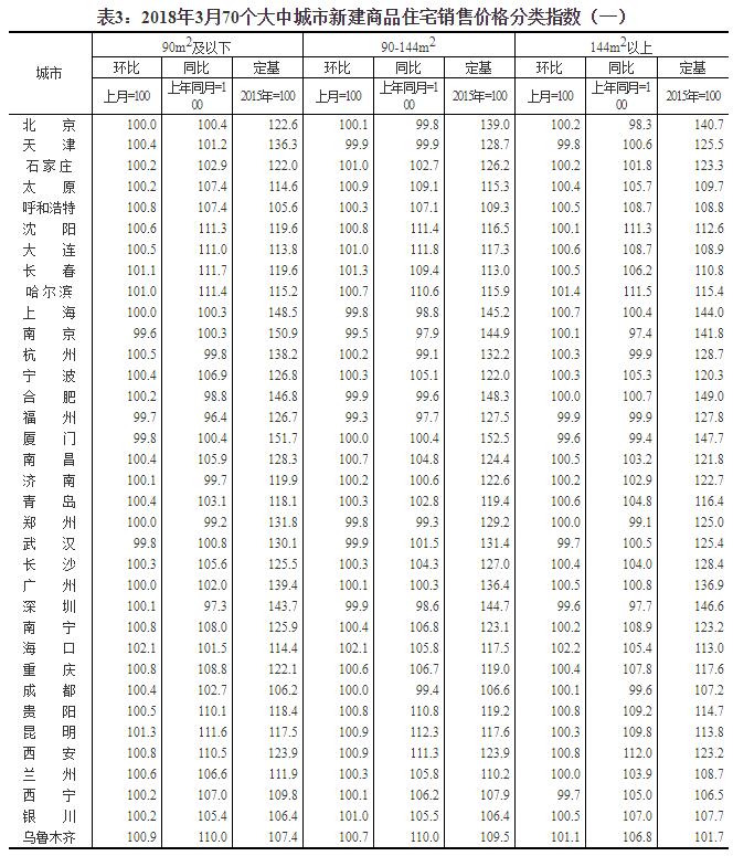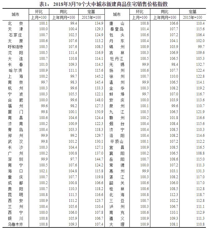 2018年3月份70個(gè)大中城市住宅銷售價(jià)格變動(dòng)情況