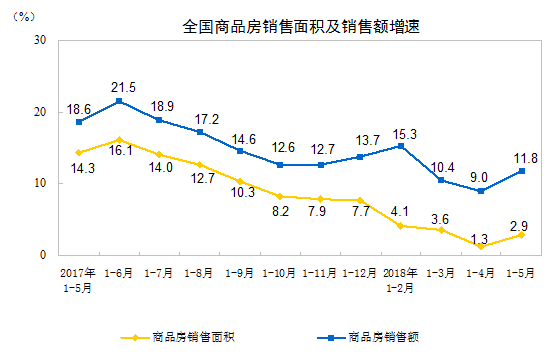 2018年1-5月份全國房地產(chǎn)開發(fā)投資和銷售情況