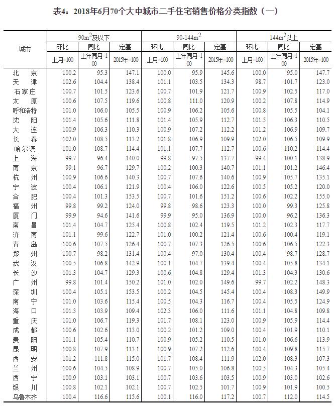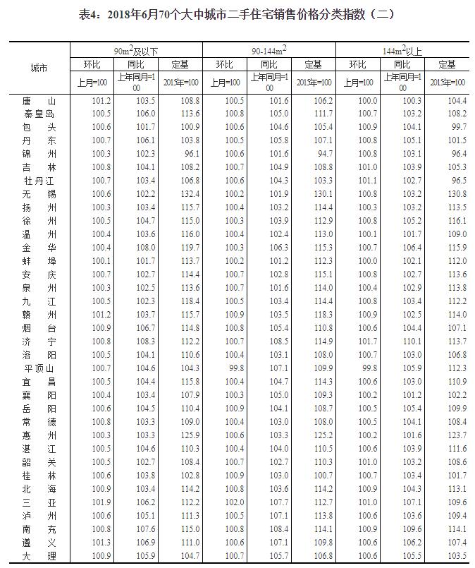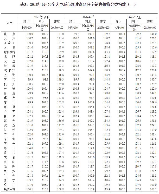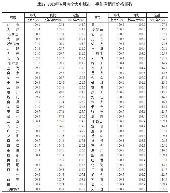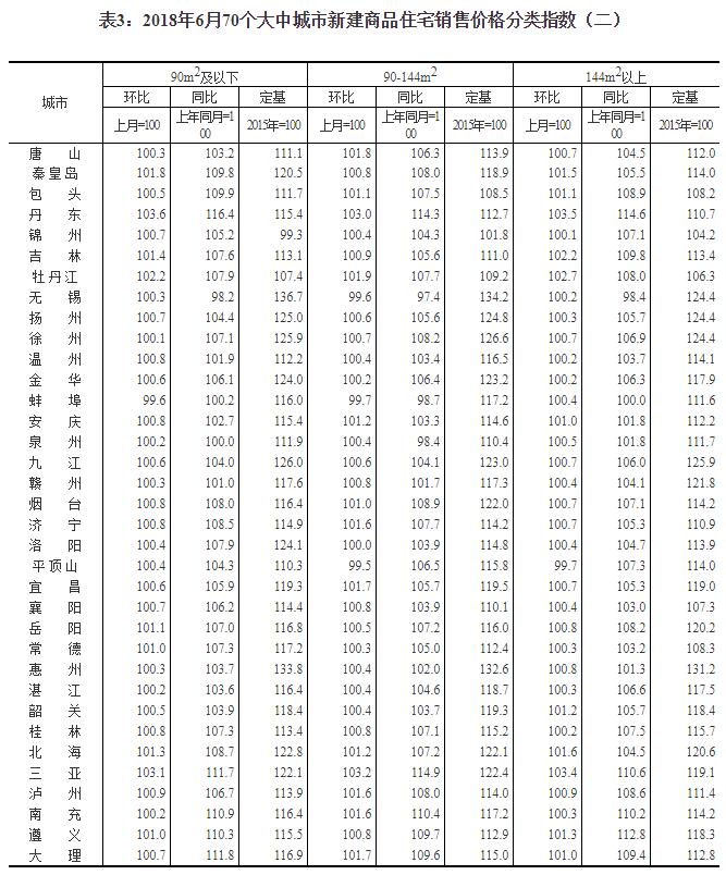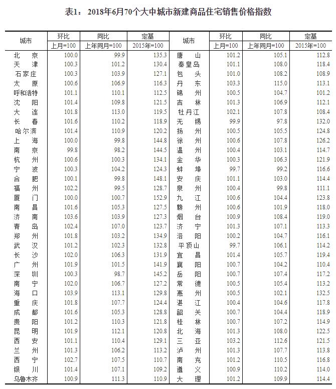 2018年6月份70個(gè)大中城市住宅銷售價(jià)格變動情況