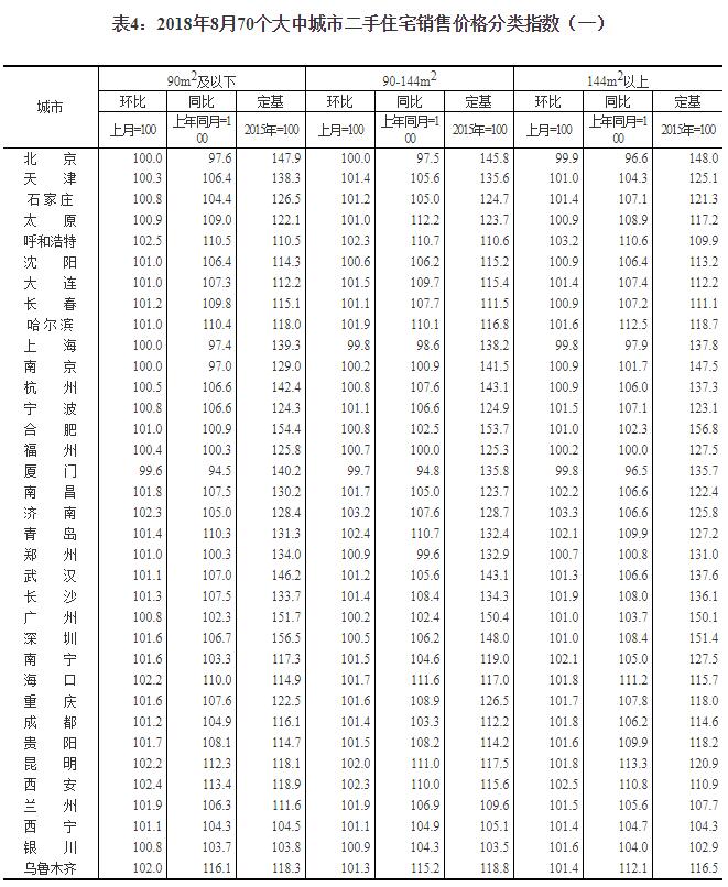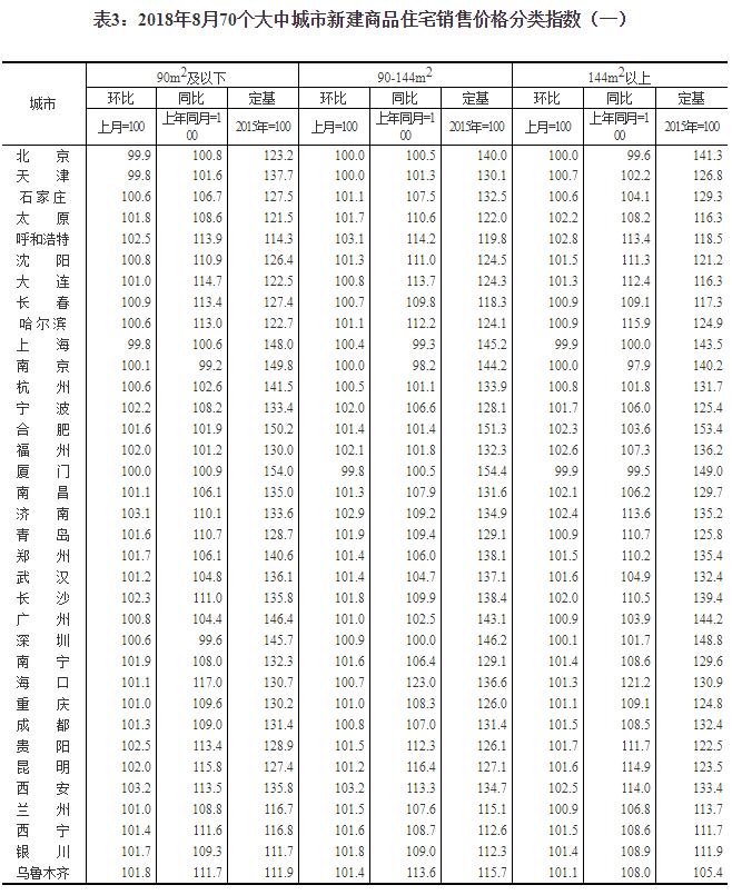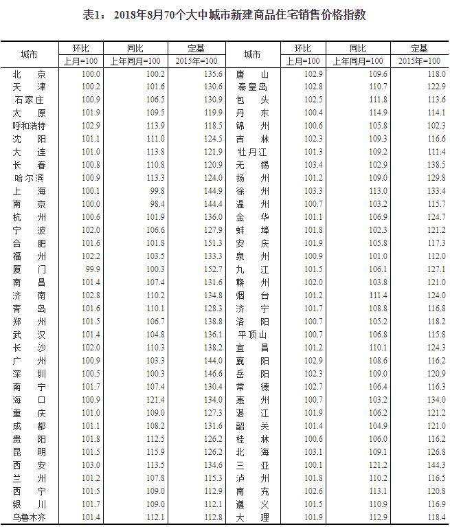 2018年8月份70個(gè)大中城市住宅銷售價(jià)格變動(dòng)情況