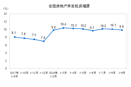 2018年1-9月份全國房地產(chǎn)開發(fā)投資和銷售情況