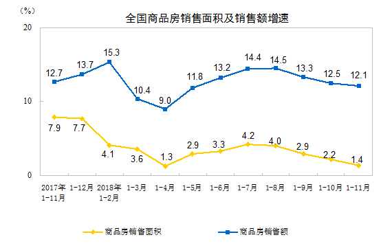 2018年1-11月份全國房地產(chǎn)開發(fā)投資和銷售情況