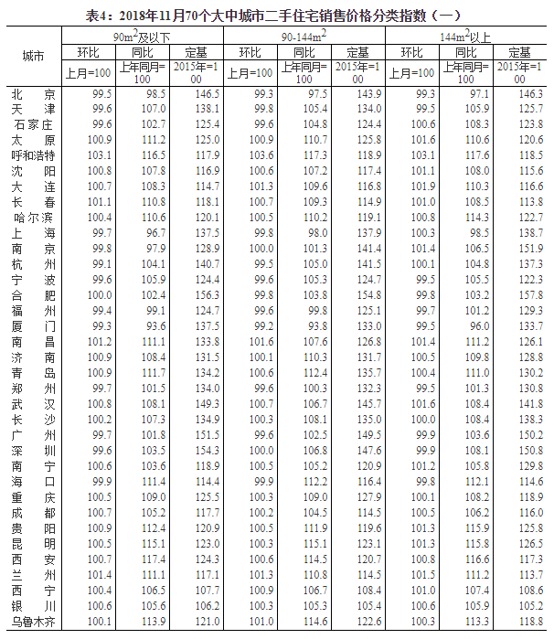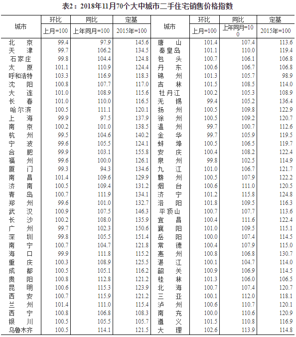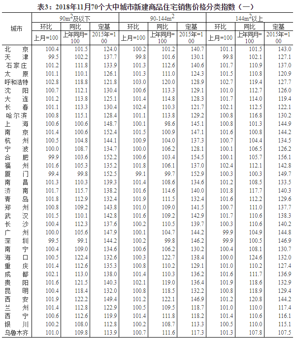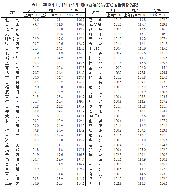 2018年11月份70個(gè)大中城市商品住宅銷(xiāo)售價(jià)格變動(dòng)情況
