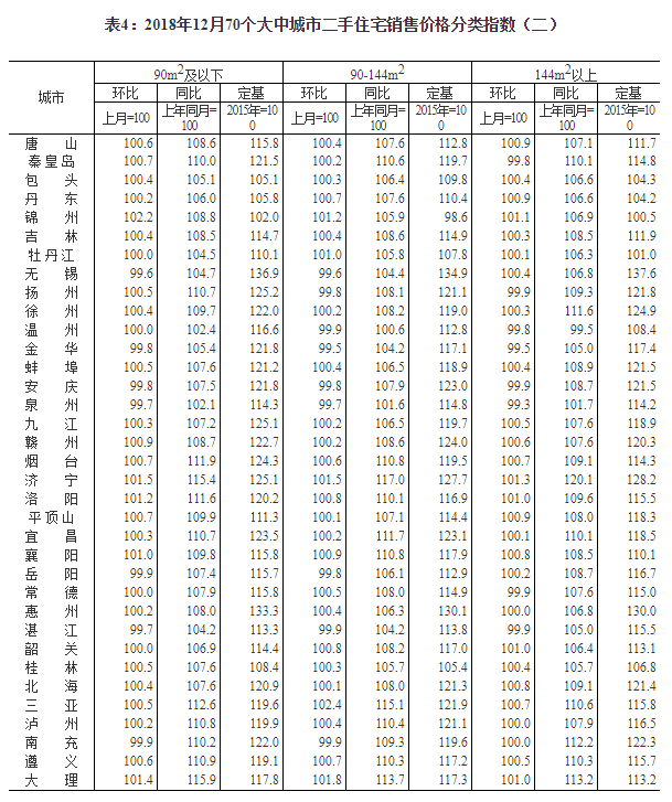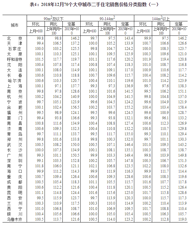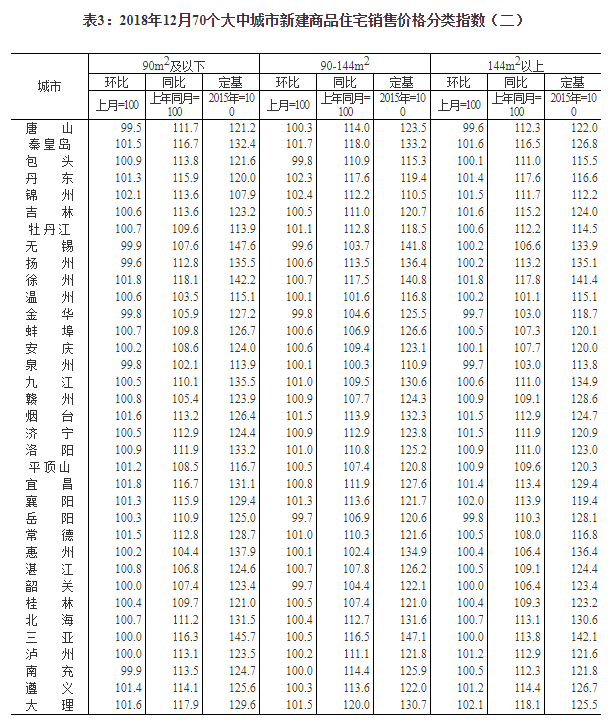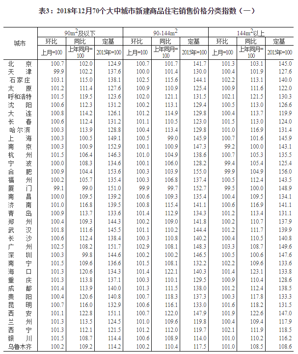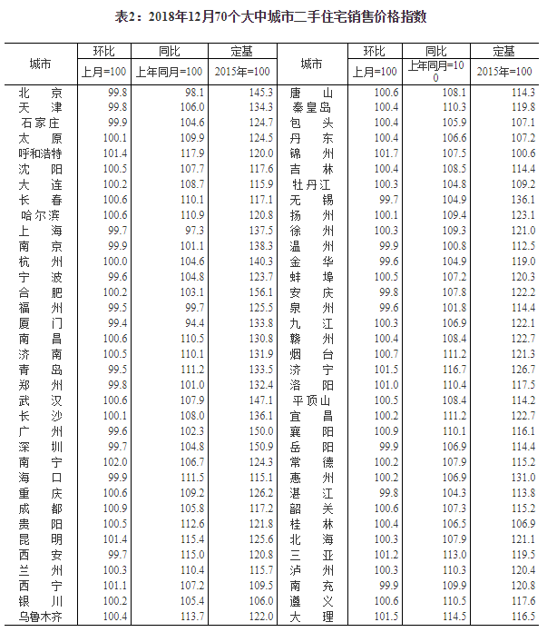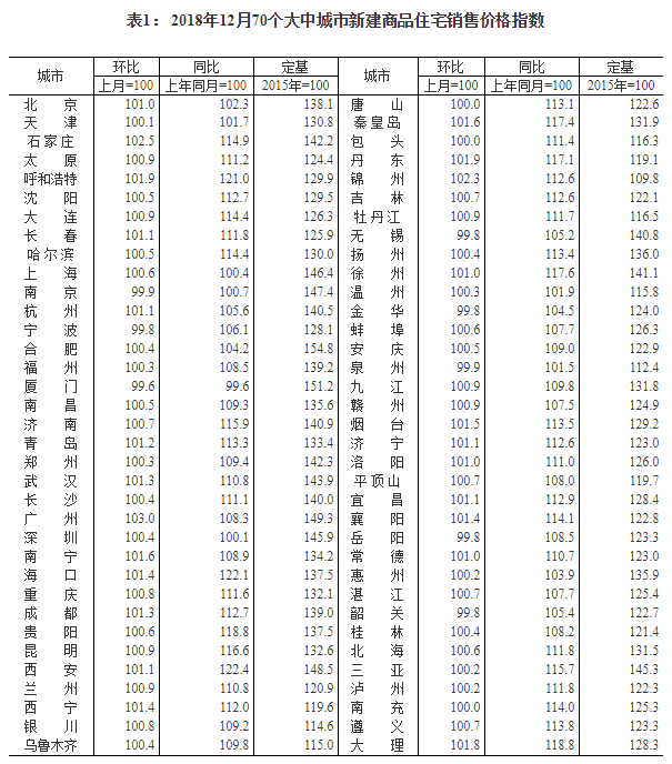 2018年12月份70個(gè)大中城市商品住宅銷售價(jià)格變動情況