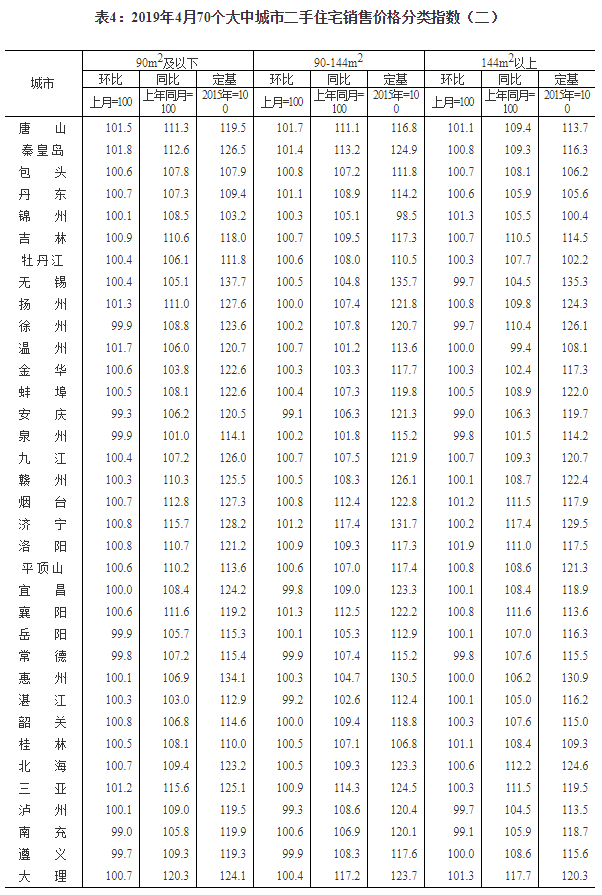 2019年4月份70個大中城市商品住宅銷售價格變動情況