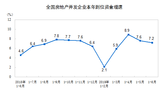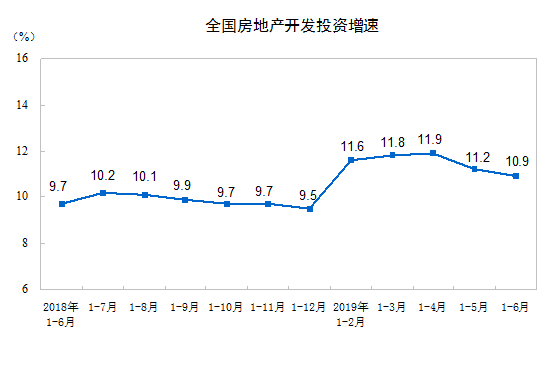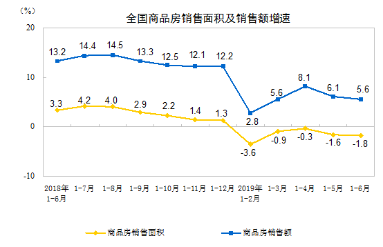 2019年1-6月份全國房地產(chǎn)開發(fā)投資和銷售情況