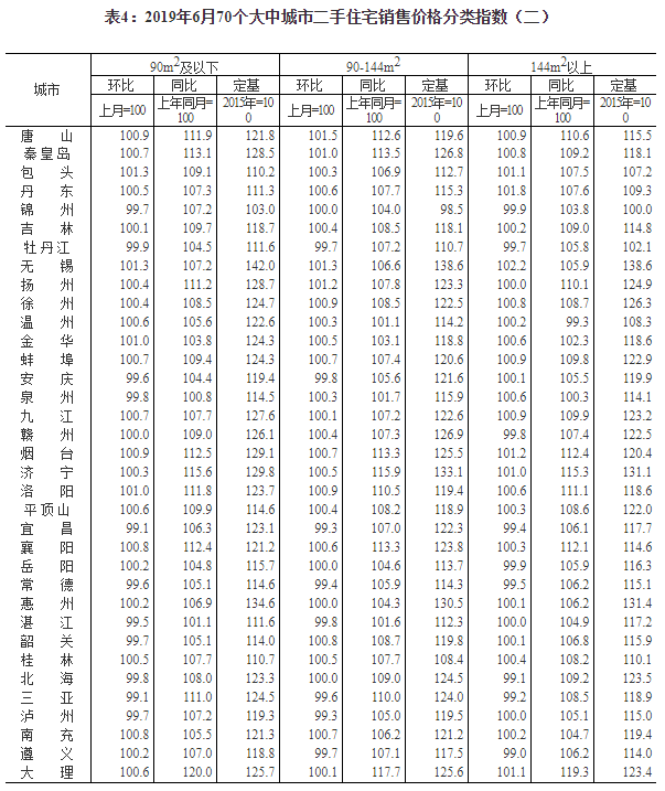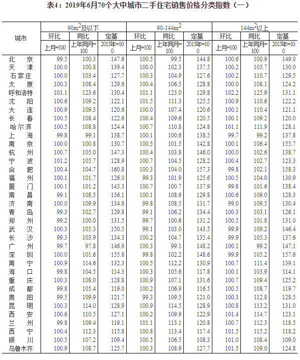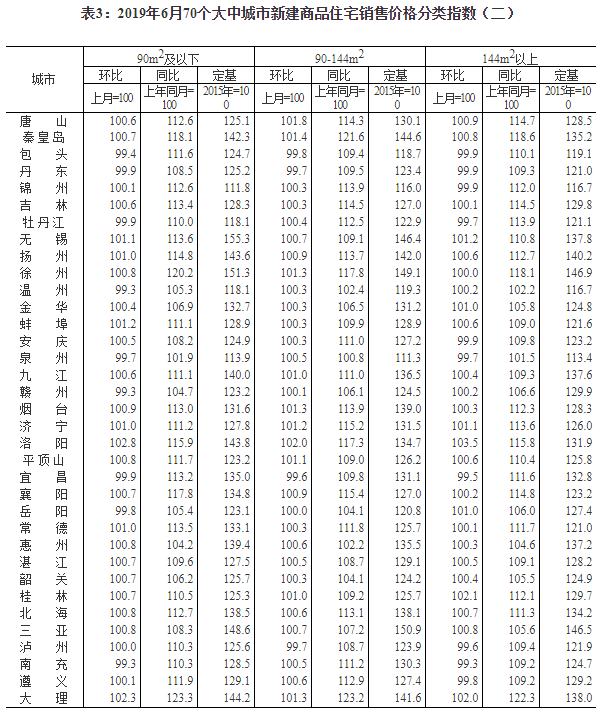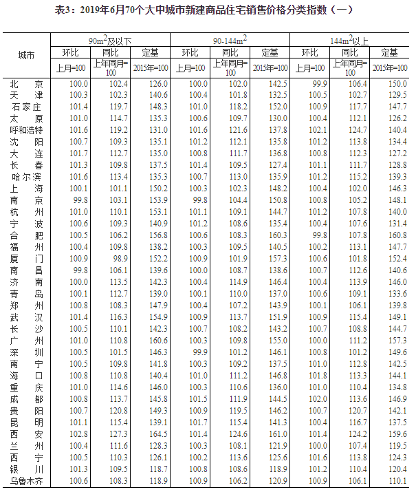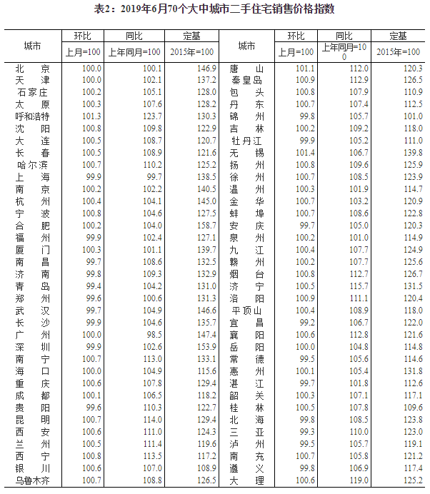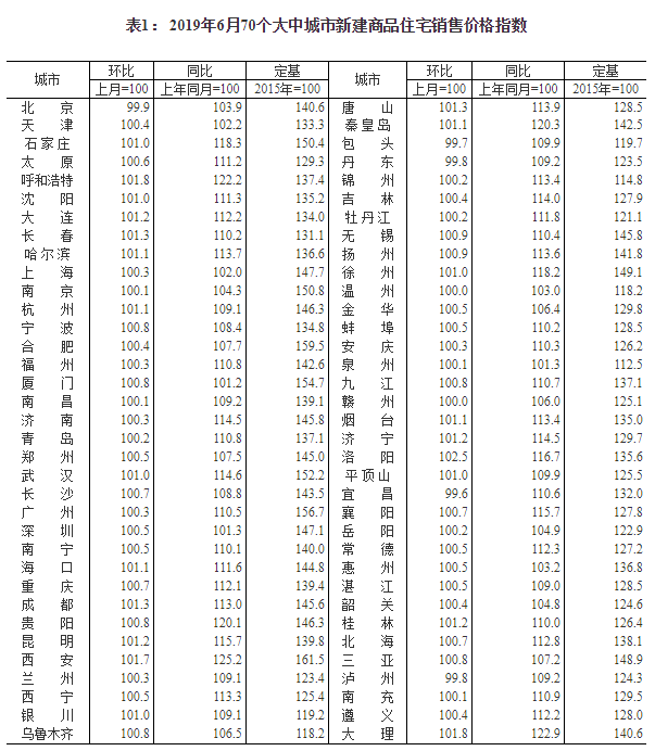 2019年6月份70個(gè)大中城市商品住宅銷售價(jià)格變動(dòng)情況