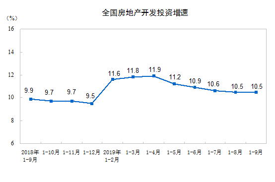 2019年1—9月份,全國房地產(chǎn)開發(fā)投資98008億元,同比增長10.5%,增速與1—8月份持平。其中,住宅投資72146億元,增長14.9%,增速持平。
