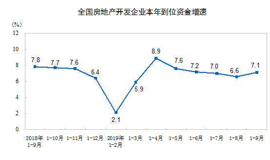1—9月份,房地產(chǎn)開發(fā)企業(yè)到位資金130571億元,同比增長7.1%,增速比1—8月份加快0.5個百分點。其中,國內貸款19689億元,增長9.1%;利用外資104億元,增長1.4倍;自籌資金42024億元,增長3.5%;定金及預收款43877億元,增長9.0%;個人按揭貸款19900億元,增長13.6%。