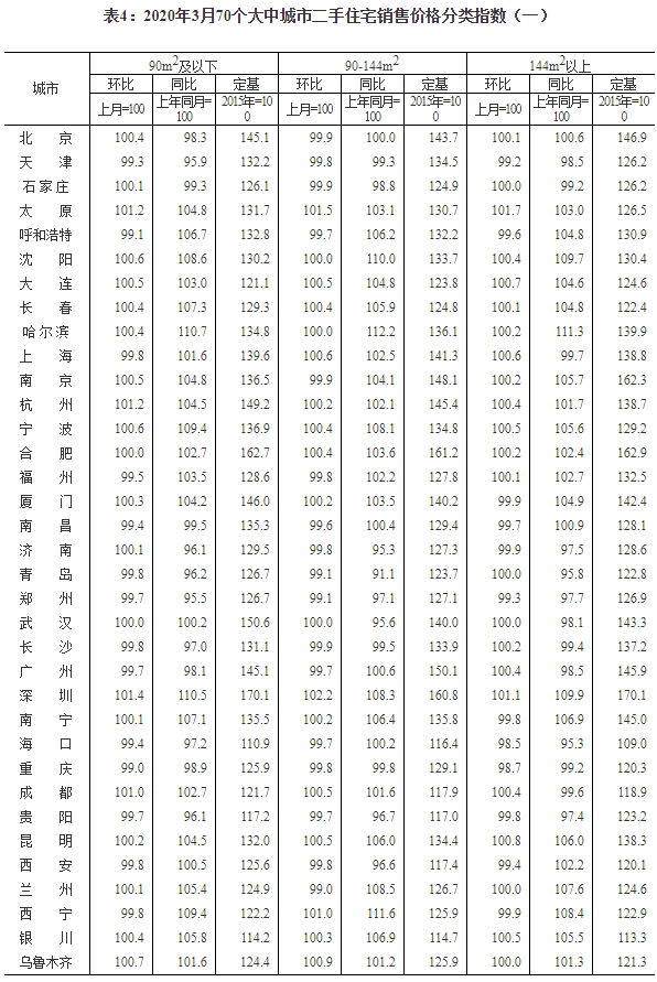 2020年3月份70個大中城市商品住宅銷售價格變動情況
