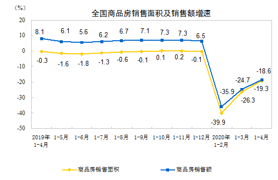 2020年1-4月份全國房地產(chǎn)開發(fā)投資和銷售情況