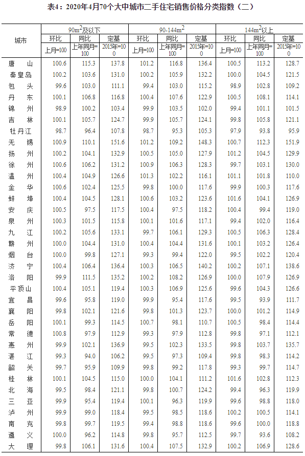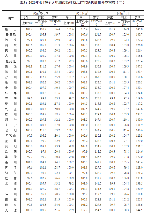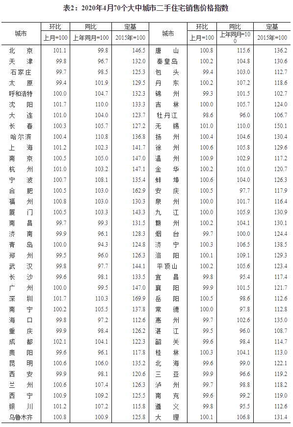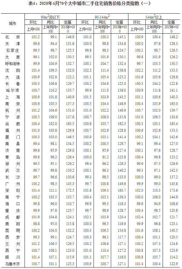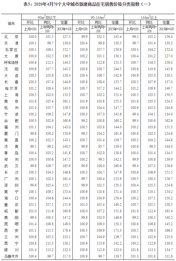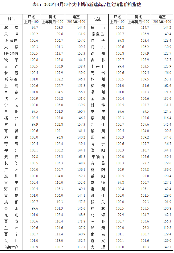 2020年4月份70個(gè)大中城市商品住宅銷售價(jià)格變動(dòng)情況