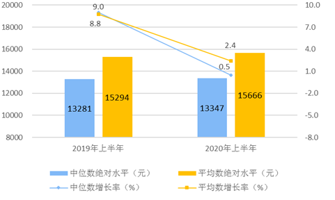 圖1 2020年上半年居民人均可支配收入平均數(shù)與中位數(shù)