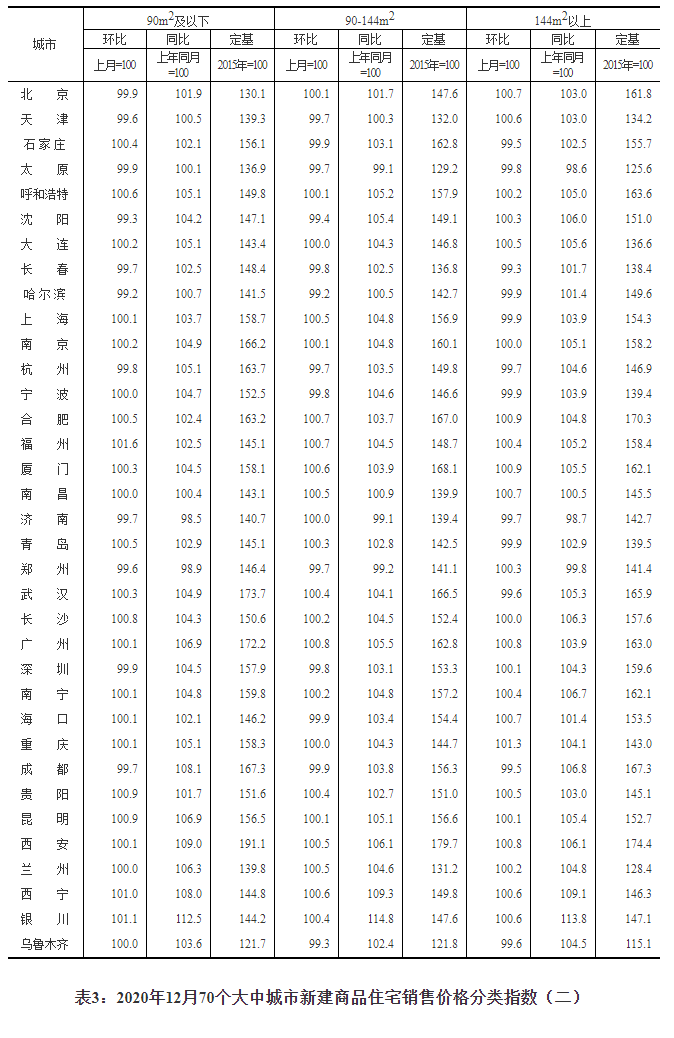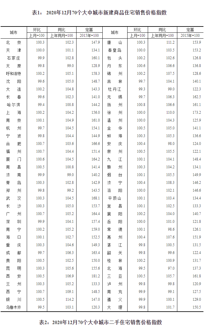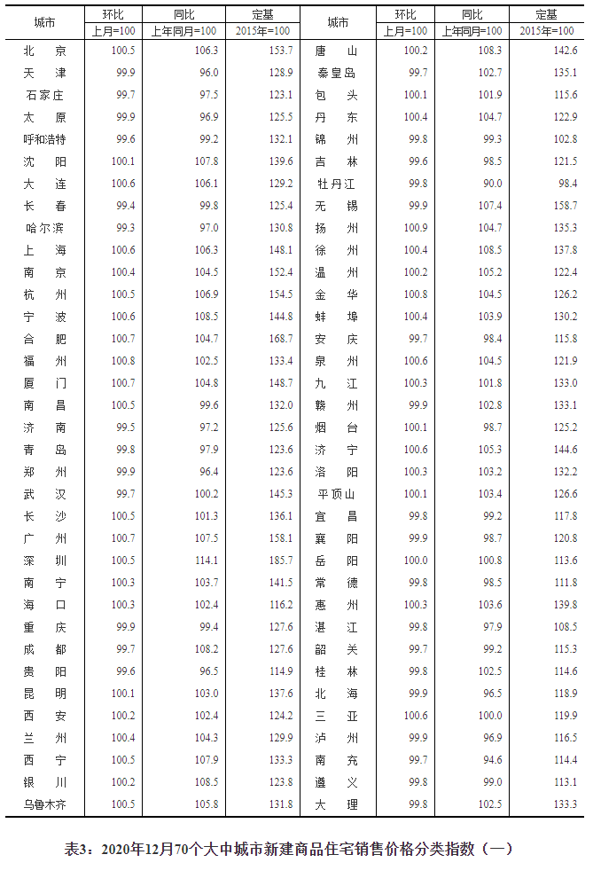 2020年12月份70個(gè)大中城市商品住宅銷(xiāo)售價(jià)格變動(dòng)情況