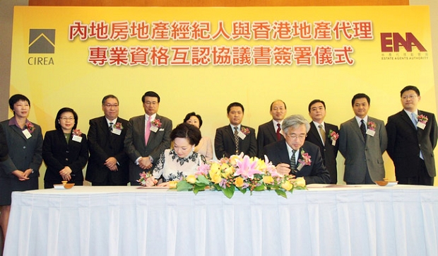 陳韻蕓主席在致辭中介紹,自從1997年香港回歸祖國以后,內地與香港在經(jīng)濟方面的關系日益緊密,隨著CEPA簽訂落實,兩地的經(jīng)濟融合與人才交流進一步加強,不少專業(yè)資格以互認形式,開拓更多的發(fā)展機會。內地房地產(chǎn)經(jīng)紀人與香港地產(chǎn)代理專業(yè)資格互認協(xié)議簽訂后,兩地的房地產(chǎn)經(jīng)紀人能夠通過這個資格互認的安排,獲得對方的執(zhí)業(yè)資格,借兩地經(jīng)濟持續(xù)融合和發(fā)展的大趨勢,不斷開拓新的商機。內地房地產(chǎn)經(jīng)紀認和香港地產(chǎn)代理各有不同的優(yōu)勢,實行資格互認可以促進知識經(jīng)驗的交流,達到互惠互利、優(yōu)勢互補的目標。